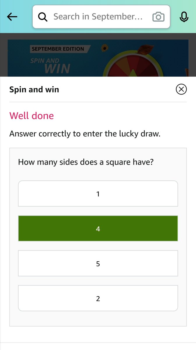 Amazon Monsoon Edition Spin And Win Quiz How Many Sides Does A Square Have
